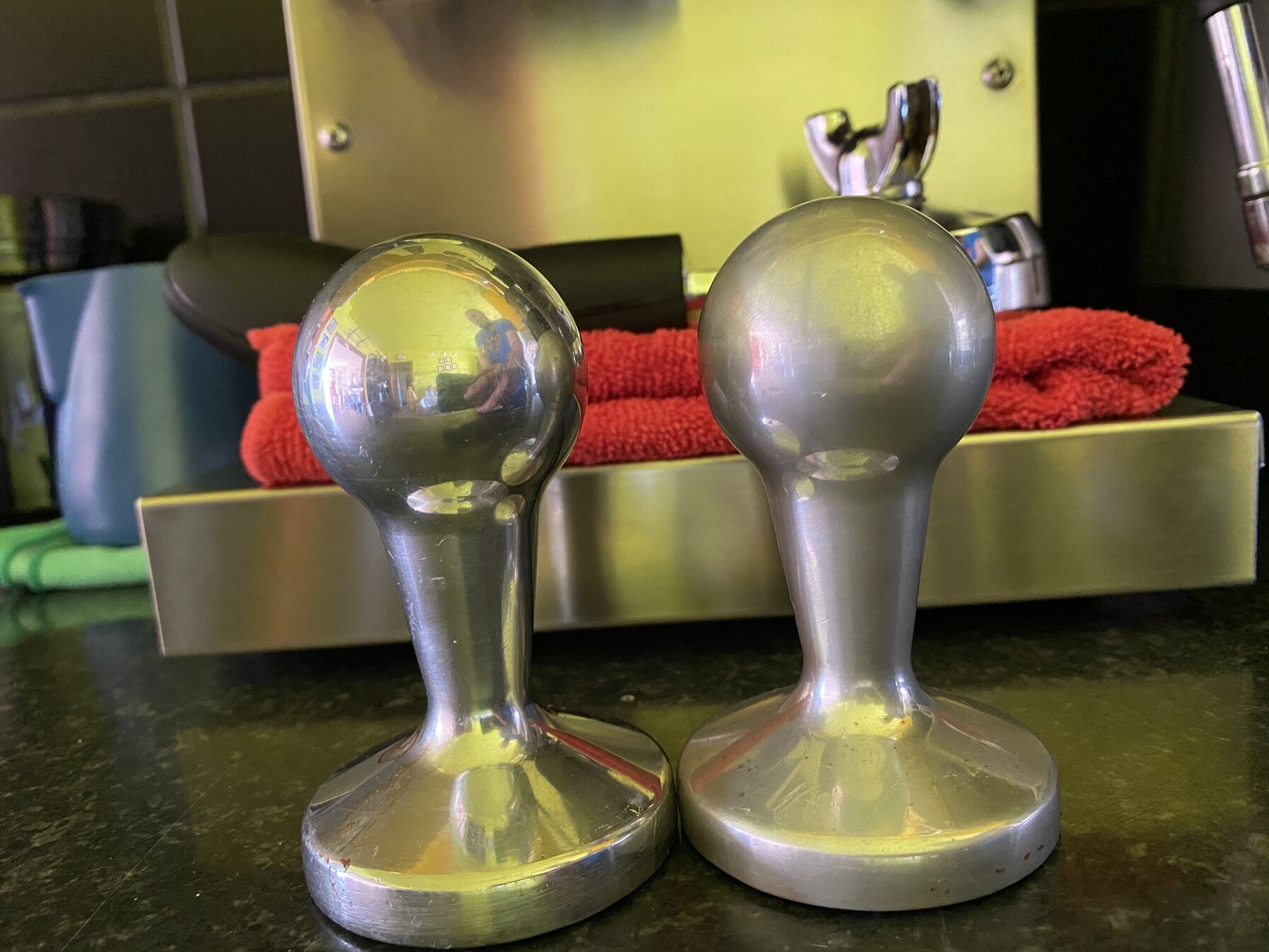 Nos, nekem van egy ilyen adagolós poharam Aliról. Egyet kell tudni róla, hogy elég lötyögős, tehát nem illeszkedik nagyon az 58-as kosárra patentosan, talán 2 mm a difi, de ettől még kezelhető. Úgy gondoltam ezzel kényelmesebb lesz a rutin, de nem sokat javított. Miután átfordítom, egy kis rázással mondjuk eloszlatom belül még a kávét, ugye a pohár itt segít ha még rajta van, de a lötyögés miatt nem a legstabilabb a történet, vigyázni kell nehogy leessen közben. Aztán persze ettől függetlenül el kell még simítani a kávét így is, aztán jöhet a disztribútor. Ez se rossz módszer, de én jelenleg lehet jobban preferálom a magasító segéd+fogpiszkálóval való átkeveréses előkészítést. Valamennyivel az utóbbinál jobbnak tűnik a lefolyás is.