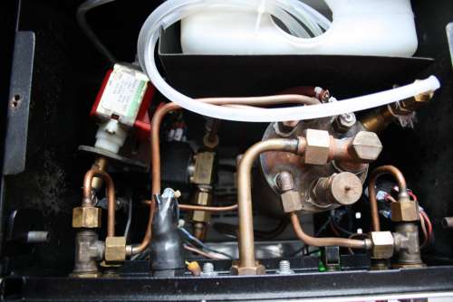 1.3 literes bojler. Egyetlen mágnesszelep, szóval maga az egyszerűség. Szintező elektronika az van benne.