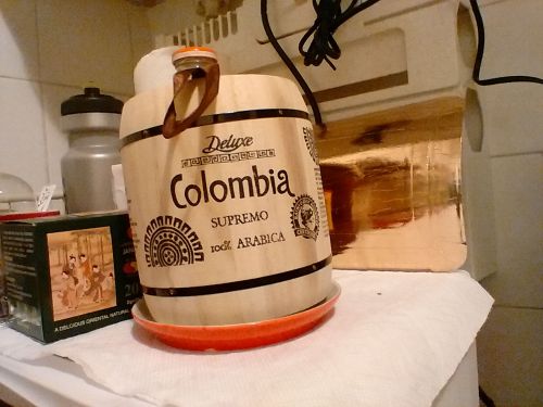 kék-fehér-kék zászlós cimkéjű kávét kaptam. A szokásos egyedi keverék, maradék 10 gram. Lett abból egy kávé is.Az első kifejezetten citrusos jellegű lett, azt nem hagyta meginni, mert lekapta azt a zacskót és csinált még egy adagot- "Ebből jobb lesz neked!" címmel.