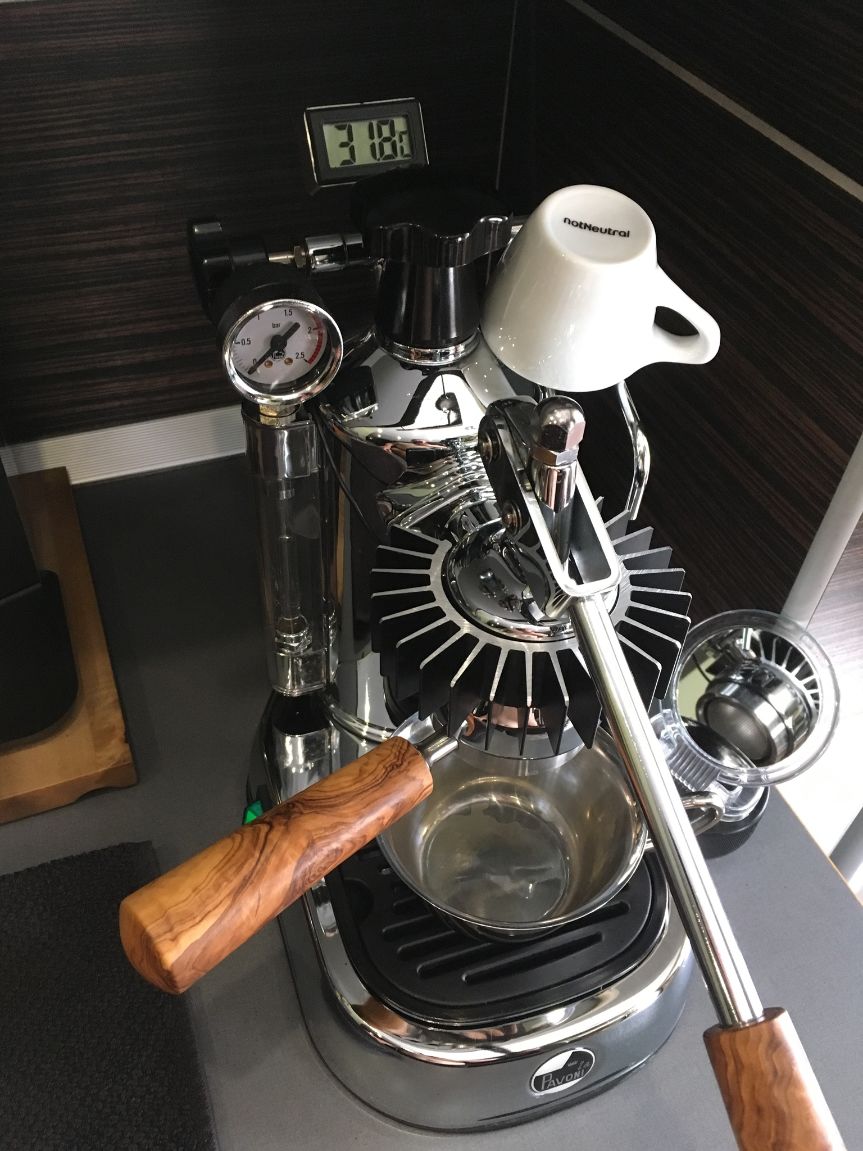 Hát a hőstabilitás azért barokkos túlzás, de sokkal kezelhetőbbé válik. Én általában csak egy presszót készítek egyszerre, de vannak akik a bordával 3-4 presszót húznak sorban, ami alap állapotban nem kivetelezhető visszahűtés nélkül. Én azt tapasztaltam, hogy sokkal kiszámíthatóbb, konzisztensebb az eredmény a hűtőbordával. De azért továbbra is körbe kell udvarolni a hölgyet, ha jó eredményt akarsz. És úgy teszek, mintha a 'masszív rondítás' elkerülte volna a figyelmemet