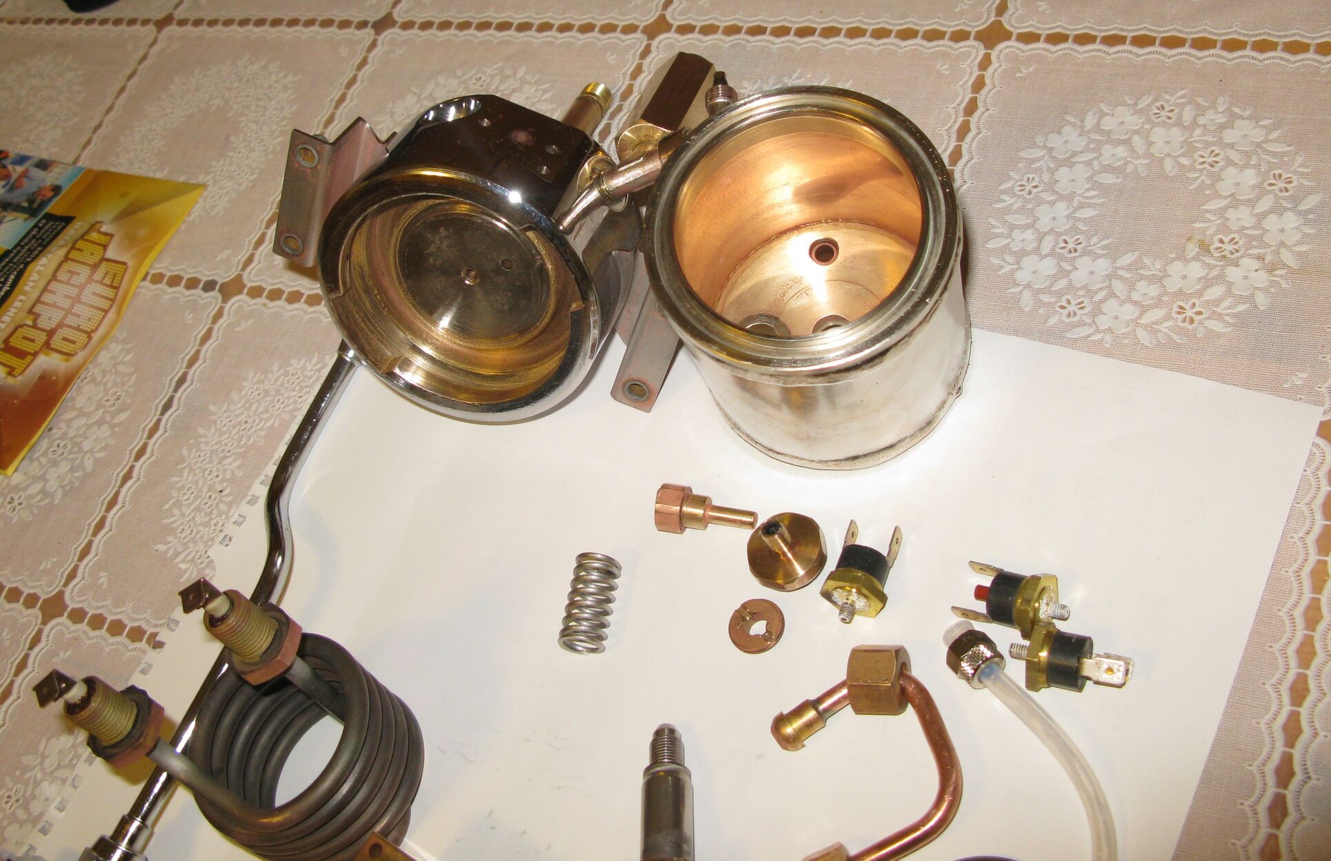 A Gaggia Classic- ban a gőz termosztát van a bojler tetején, a másik az oldalán a fej felett.