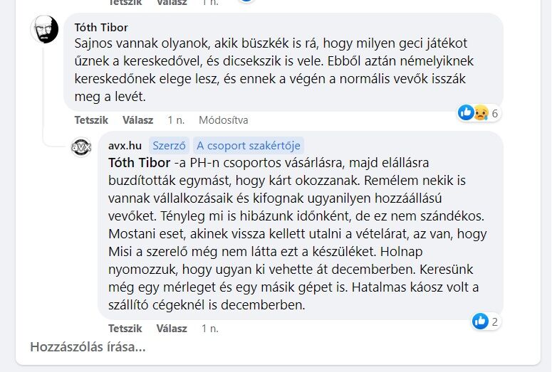 Esküszöm kiakasztó kezd lenni amit csinál, de nagyon jó hogy a "kiváló" gépei mellé legyártatja a "kiváló" minőségű eszközöket is. (fél év alatt az avx-es mérleg nyomógombjaira rárakott fólia ragasztása elkezdett elengedni, visszaküldeni nincs értelme az az érzésem)