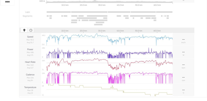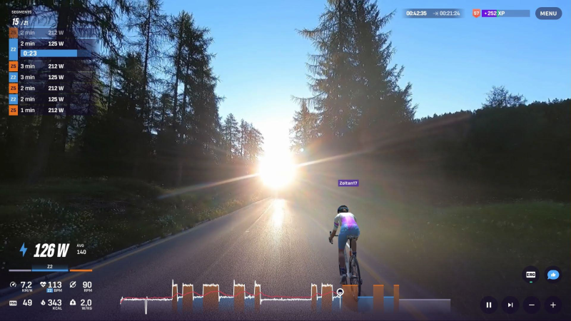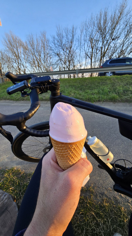 Mai gyíkváll dopamin. 20 km/h-s szél, 40 km/h-s lökésekkel, outi szervizben, csak a TT van itthon. Adta magát a görgőzés, de aztán ránéztem a szélirányra és azt mondtam most vagy soha: 2016-os grupettos KOM-ot próbáltam meg egyedül lehozni. Nem volt egyszerű odáig elszenvedni magam. Első 44 km reco volt, 2x2 perc 2 300 wattot raktam csak bele, hogy ébredjenek a lábak. Az utóbbi két hét a TT pozi beállításáról szólt, már kicsit el is voltam kenődve, mert nagyon nem akartak jönni a wattok könyöklőn, sokkal nehezebb leadni, mint országúti pozícióban. Azt hiszem, most már kezd alakulni, 10 percre 282 watt jött ki, erre dobott is intervals új FTP-t: 252 watt, de a 8 percem is PR lett (mindezt TT poziban, aki ment már így, az tudja, hogy tök máshogy működik, mint a szfinx vagy alsó fogás outin.