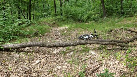 Ti hogy a piklibe tudtok 20%-os gyökeres, kavicsos terepen feltekerni? Én nem tudom a Gerecsében hány százalékos volt az emelkedő, de kénytelen voltam tolni, nem a túrista úton mentem, hanem valami elhagyatott részen. Ha előre dőltem kipörgött a hátsókerék, ha hátrébb volt a súlypontom az első kezdett táncolni fel, le, jobbra, balra majd szépen dőltem el, esetleg csúsztam vissza lefelé míg el nem fektettem a bicajt. Lehet ezt még gyakorolnom kell. Egy idő után rátaláltam az útra ott már simán tekertem felfelé, lefelé viszont para volt, végig a féket húztam mint az állat 55 km/h nekem egy picit sok.