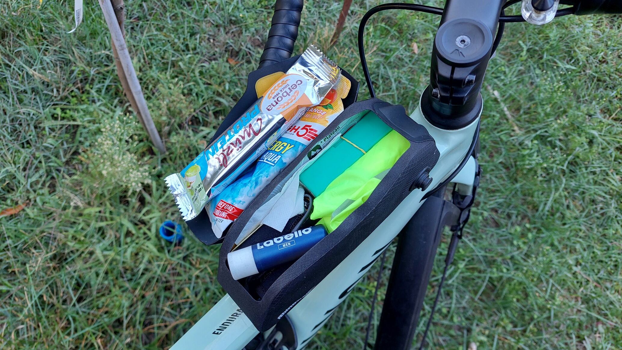 Még a 0,6 literes is elég nagy alapfelszereléshez, féltem, hogy az 1 literes már dől oldalra, de gravel szetáphoz lehet, hogy rendelek egy olyat is. Szivacs van az alján, amire nagy márkák sem gondolnak, pedig a csavarfejeken zörög, súrlódik minden. Háló sajna nincs az oldalán, talán ez az egyetlen hibája, amúgy köröket ver a Canyon saját táskájára. -