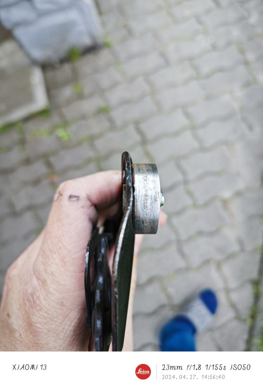 Egyes hivatásos kerékpár szerelők se értenek ehhez általában. Váltó fül egyenesítésre vittem a helyi R+B kerékpár szervízbe a kerékpárt ahol elhajtottak azzal hogy kopott a hátsó sorom és addig nem nyúlnak hozzá míg a sor nincsen kicserélve. Közben a Cues sornak elég érdekes fogazat mintája van hiába magyaráztam a szervízesnek hogy a kettőnek semmi köze nincsen egymáshoz és a 2-ik lánccal van használva és köszöni szépen semmi baja nincsen, azóta megkapta a 3-ik láncot is és továbbra is probléma mentesen teszi a dolgát. Így felvittem a városba a Velosportba és minden teketóriázás nélkül kiegyengették a fület plusz kaptam ingyen bowdent a váltóba mert lusta voltam tenni rá bowden vég kupakot vagy talán elhagytam mert rosszul tettem rá de az új bowden szét szálasodott..
