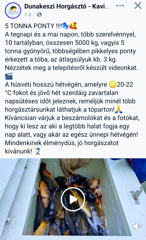 Tegnap Tiszakécskén 35 ponty jött, a legtöbb 4–5 kg körüli volt. 🙂
