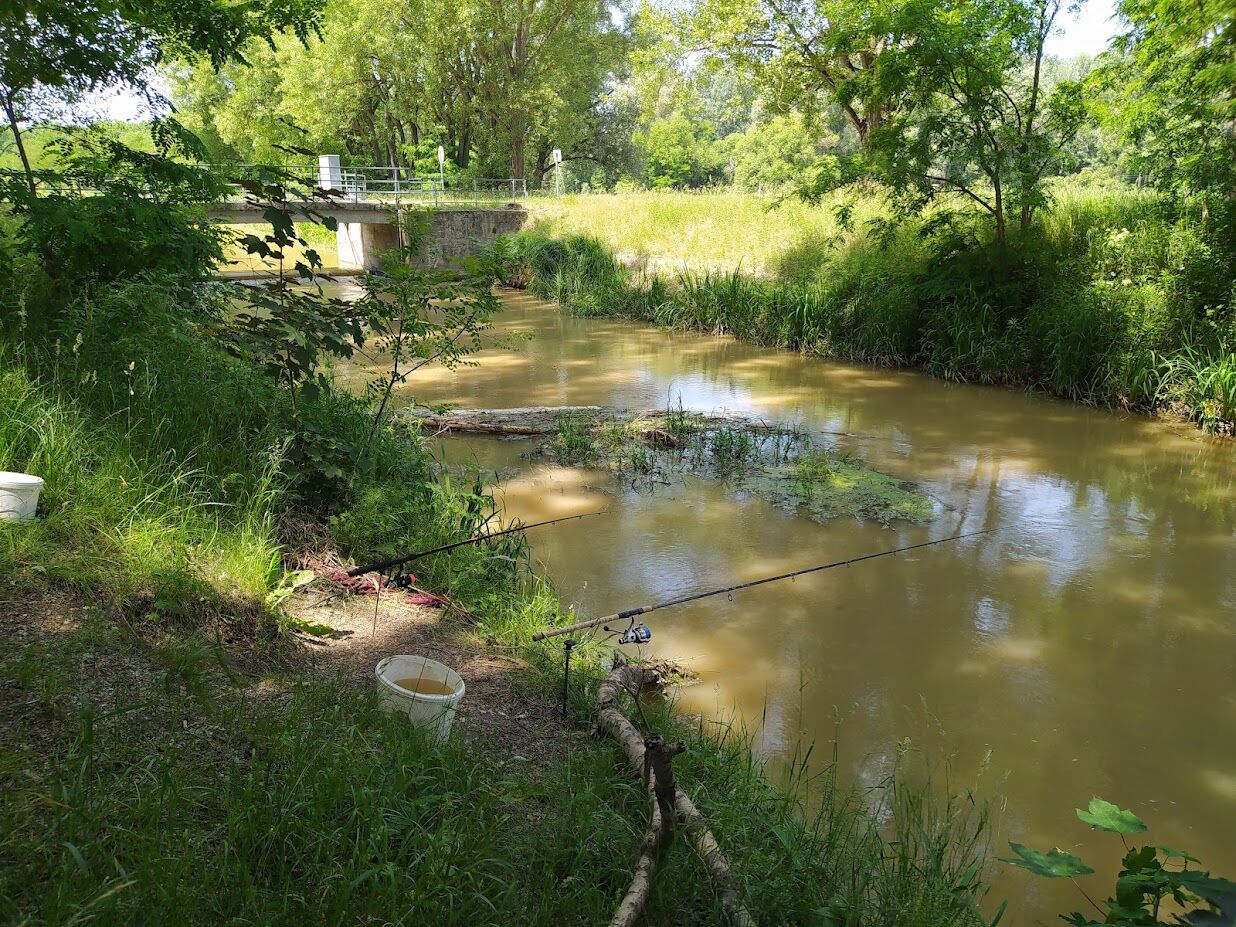 Kinéztem ebéd után a Rábcára. Reggel hazakergetett a tóról a nyárfaszösz, megmaradt az etetőanyagom. A zsilip alatt bedőlt egy nagy faág, már egy kis sziget alakult ki mögötte, de legalább megfogja a szemetet, mögéje etettem, és horgásztam.