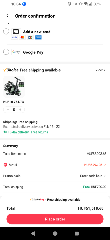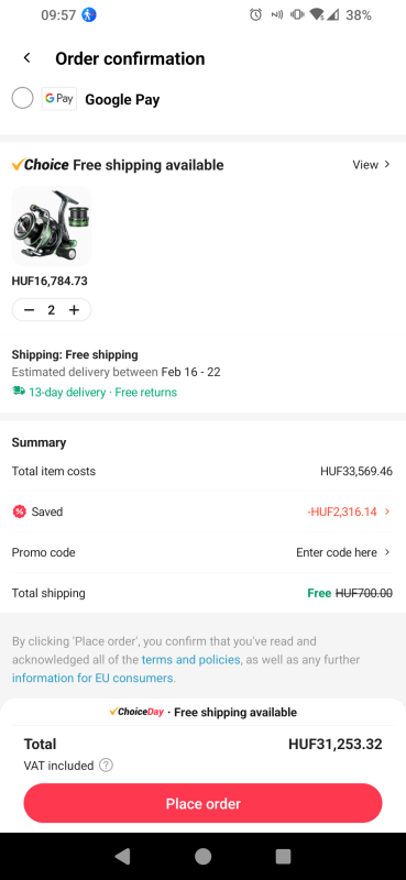 ) Így berendeltem két szettet ebből a Seaknight orsóból, tetszett amit találtam róla, összesen 151.25 dolcsit fizettem értük. (volt egy choice kuponkód, amivel lejött még 20 dollár a végösszegből)