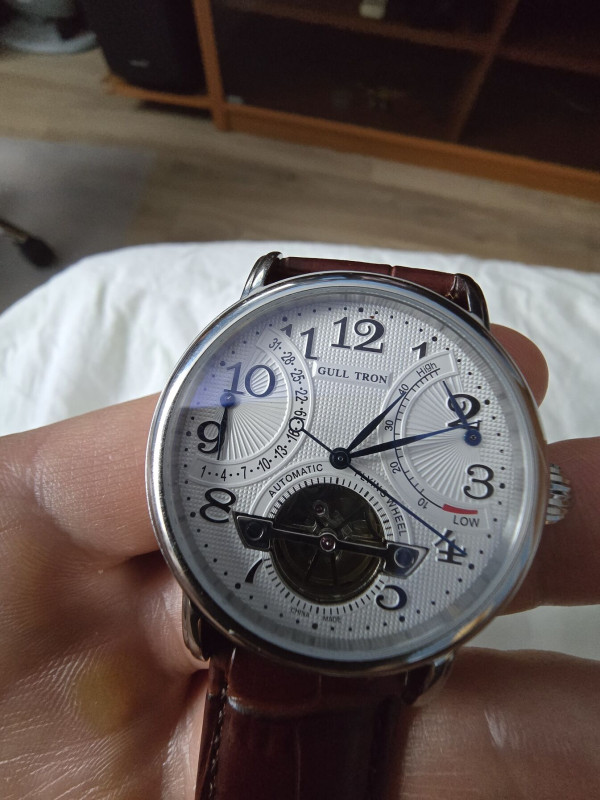 gull tron (sea gull) ST25 szerkezettel. Teljesen felhúzva 2 sec eltérés majd meglátom leengedve mit produkál. itt már legalább látom hogy mennyire van felhúzva. Ez a hardlex üveges változat de van zafír verzióba is de az már sea gull név alatt fut - egy a gyártójuk. 36 000 ft
