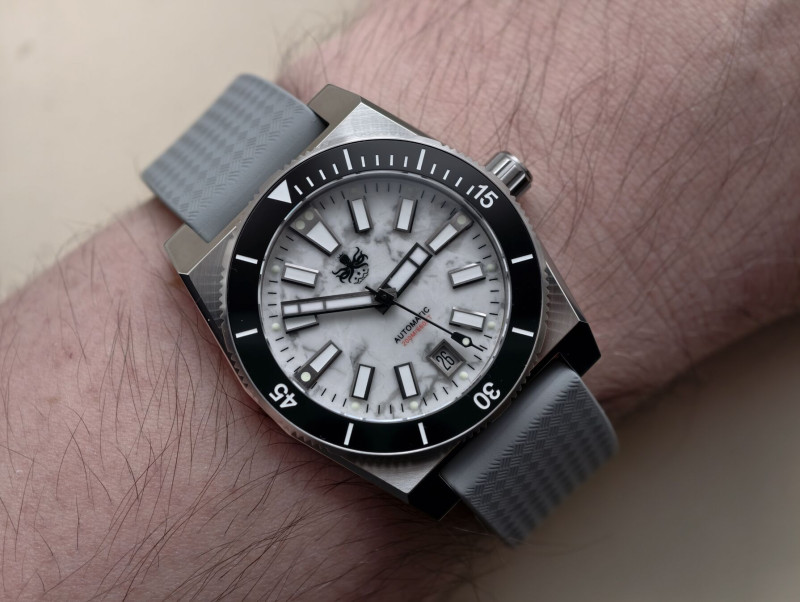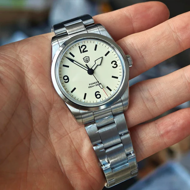 . Viszont ezek a polírozott szélű mutatók elvesznek a fehér számlap miatt. Fekete szélekkel sokkal jobban mutatna.A Hruodland F013 pilóta órád nem nagyon akar lejjebb menni