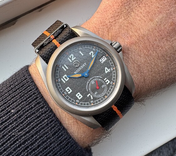 csak egy gyors képet csináltam. Ez vörös barna szíj. Igazából hasonlót raktam be múlt héten amit másik user csinált képet. Jött egy bézs szíj is az nem volt szép, mert az óra is ilyen világos. A sötét barna szíj amit legelőször raktam rá az elmegy de olyan semmi extra. Talán ez a vörös barna lyukacsos szij ad neki pici karaktert. De amugy a gyártó rendes, mert a nato szíj mellett volt milanoi szíj is a dobozban bár nekem egyik sem jött be. -
