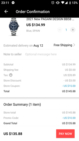 Mi az oka annak, hogy megemelkedtek a Pagani órák árai? Eddig 89$ körül mentek a sub homageok, daytona homage is megállt 84$ körül eu rakáttal, áfával együtt (2 hete vettem), most meg nézem és 100$ alatt nincs is Pagani már. És erre még jön áfa is.