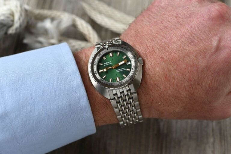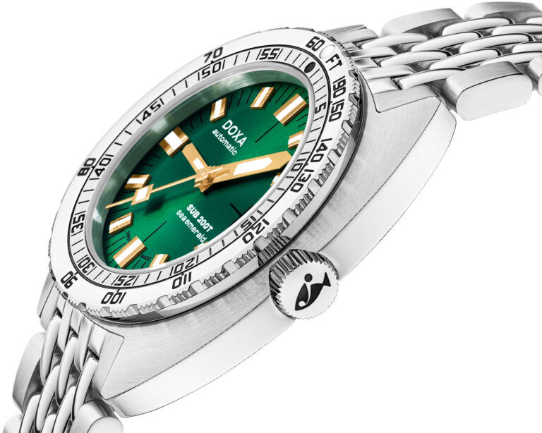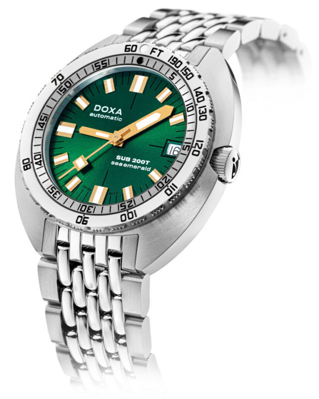 ‘Vidám nyári’ műfajban lehet kezdeni átprogramozni a kínai forgácsoló gépeket, kijött a 39mm Doxa Sub 200T, egyszerre az összesen nyolcféle színben, talán a smaragd a legérdekesebb. Erre még én is azt mondom, elég kicsinek tűnik, nagyon kompakt, 41,5mm csak a L2L, viszont a 10,7mm vastagság tetszik. Bár ilyet se fogok venni, mert minek.