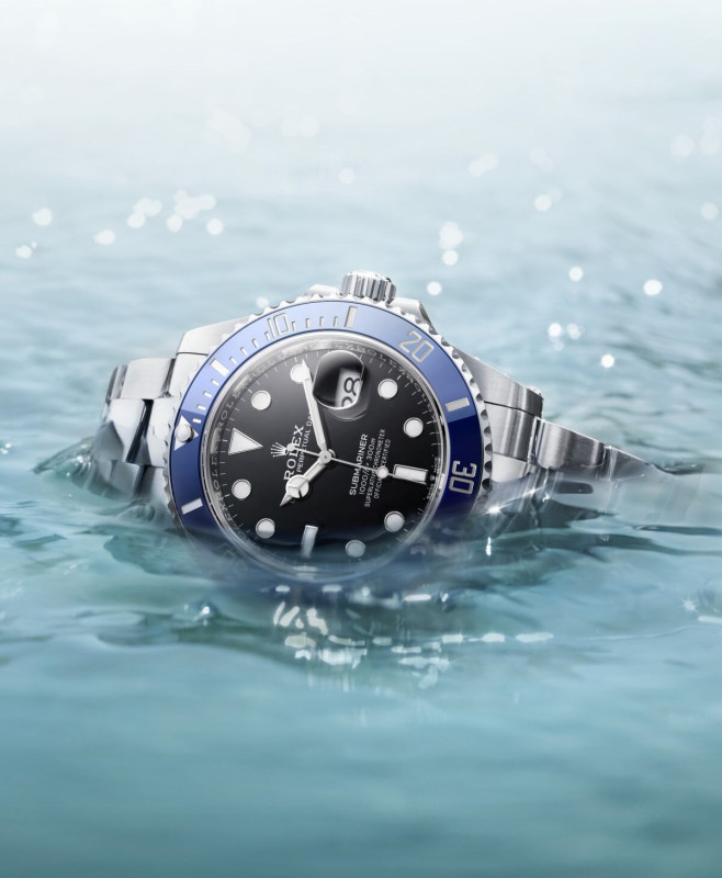 Ez egy fehér számlapos Rolex Submariner.