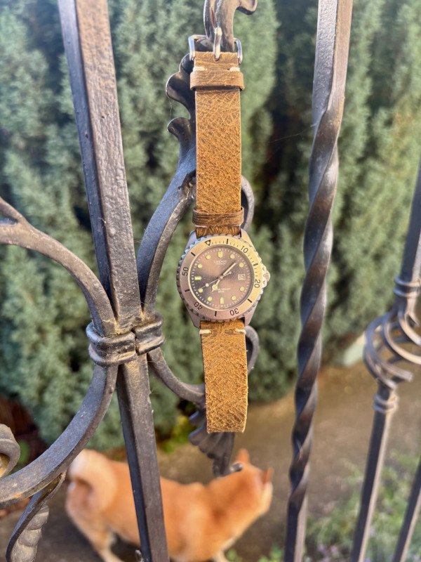 Bézs Nato-t is rendeltem, videókban-képeken sokféle szíjjal láttam az órát, szinte mindegyik jól állt neki.