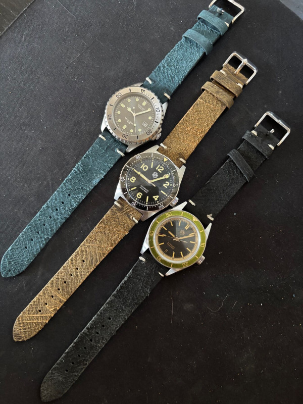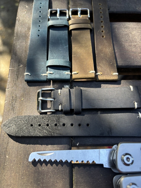 A legtöbbet ezekből* rendeltem, 18-22mm között, életben meg így néznek ki**, és mindegyik valódi bőr, többsége full grain vagy top grain, és csak egy-két 'genuine leather' van, pl. a krokó nyomatosak.