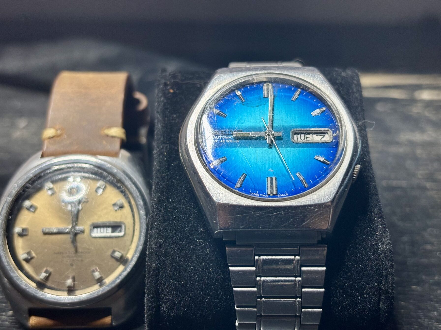 Este hét körül ide-oda mozgatva kicsit a rotort elindítottam, azt hiszem ez Magic Lever húzásos, a barnát is bedurrantottam, a két óra kb. szinkronban volt éjfélig, aztán a barna reggel állt meg, a kék meg dél körül. Most kicsit megint megrázogattam, de már bontás nélkül, egyelőre szépen jár, de majd szerviz mondja ki rá a végső szentenciát. Lehet, hogy az elmúlt kb. ötven év alatt nem is volt rendesen tisztítva, és csak beszáradt, megfáradt.