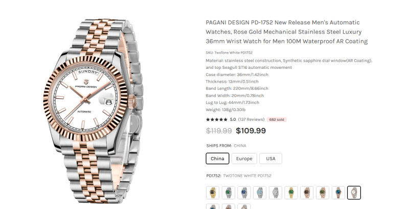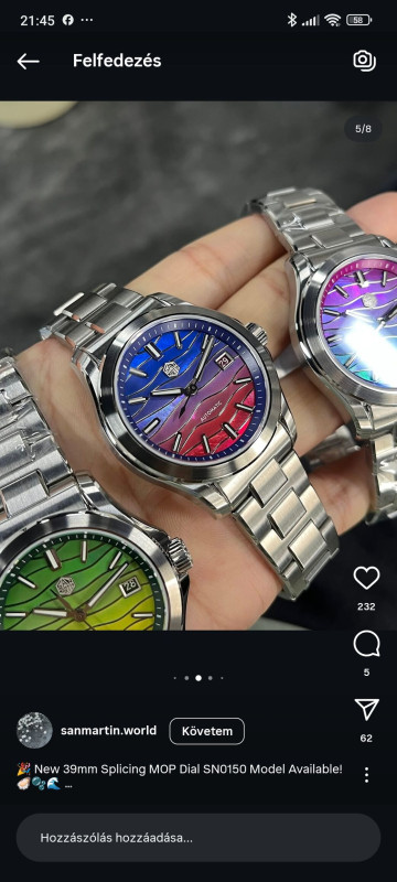 Én ezt néztem most tőlük. San Martin tényleg jó de én pont amiatt kezdtem kínai órázni, hogy ne a 150 ezres Orientem legyen napi használósban hanem inkább egy 25-30 ezres Pagani ami ha összetörik, ellopják stb ne fájjon.