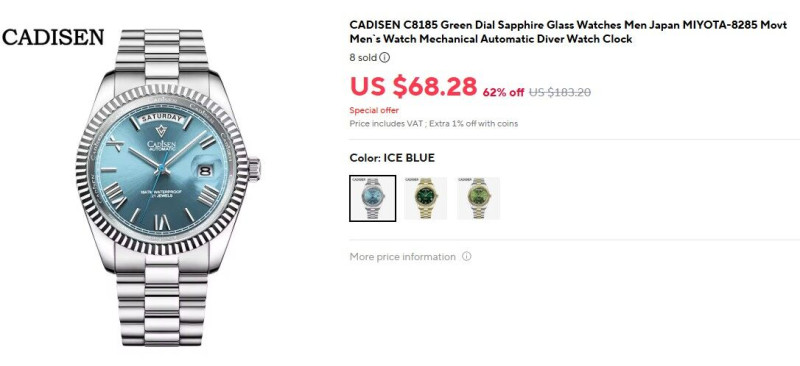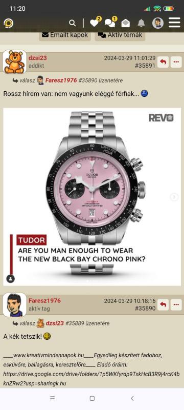 Végülis úgy döntöttem, hogy csak visszaküldtem kínába a 36 mm-es Addisdive-ot, mert nem kellett senkinek. Helyette jó lenne valami öltöny mellé. Tetszenek ezek a daydate órák. Max leműtöm róla a küklopszot.