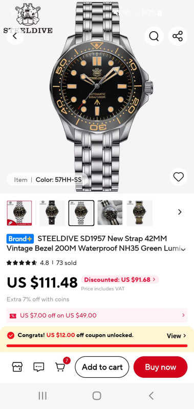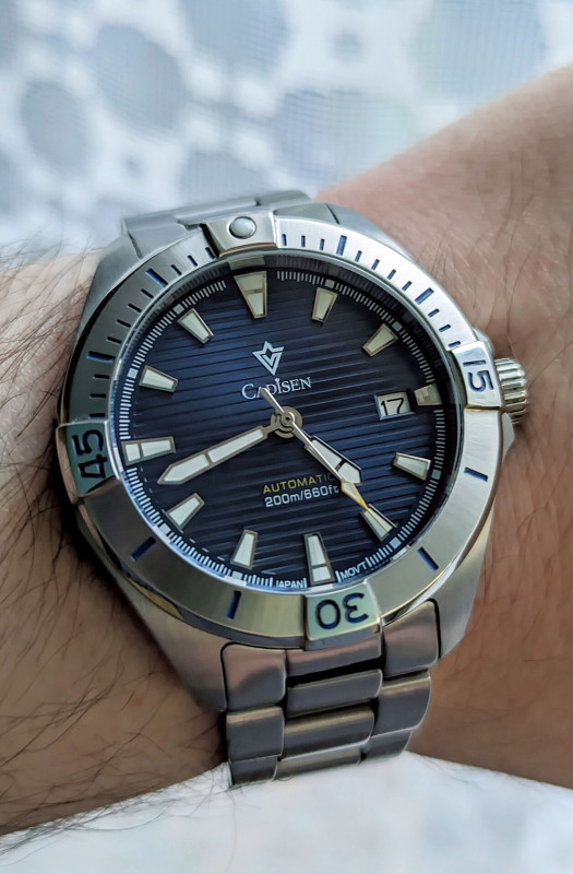 Tavaly nyáron 25e-ért sikerült megvenni coinokkal. Ezzel az órával tudtam legjobban beleszámítani a coinokat. Szerencse kellett hozzá hogy sikerüljön ennyiért kifogni. Cadisen SKX-el tudom összehasonlítani. A tokja jobban kidolgozott, és nagyobb meg vastagabb is nála. A lumen is jobb kicsit. Viszont a zafír üvegje kicsit opálosabb, gondolom vastagabb hogy bírja a 200 métert. Mivel nagyobb a tok, szélesebb a szíj is, így nehezebb az óra is. Kicsit kényelmetlenebb mint a cadisen.