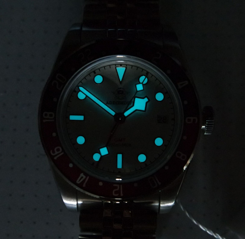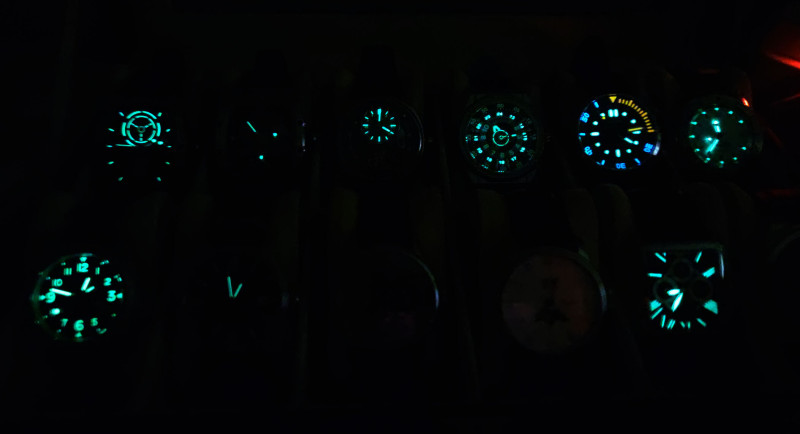 Én nem láttam "világítós" képet, de lehet van a mutatók végén valami vékony fluoreszkáló réteg.