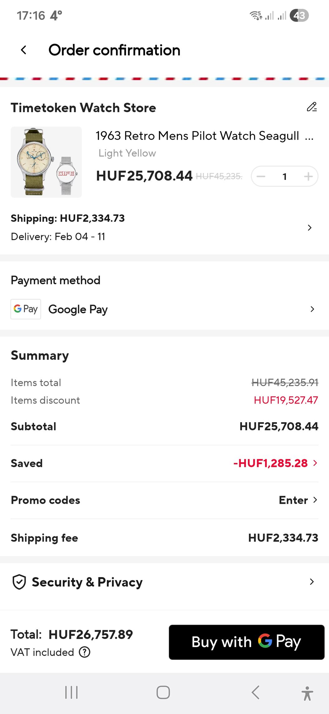 Nekem is $83-at ír, ami valóban kb. 27e (+még 2.3e a szállítás)