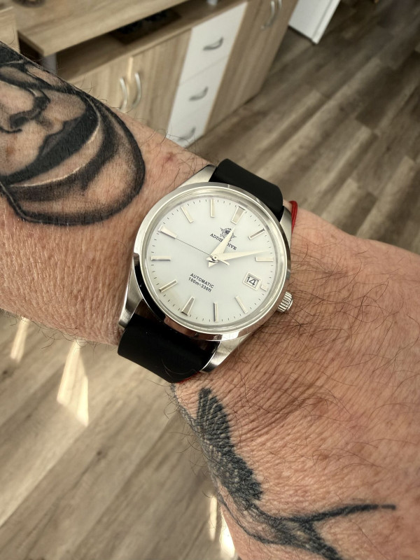 .Ez a field design valahogy nem az enyém. Kipróbáltam egy 40 dolláros órával, de valahogy túl puritán. Ellentmondásos, mert amúgy az egyik kedvenc órám egy teljesen offtopik (dárga, svájci) pilóta óra, az is sötét számlap, nagy indexek, egyszerűség, de pont annyira csilivili, hogy szeressek ránézni.