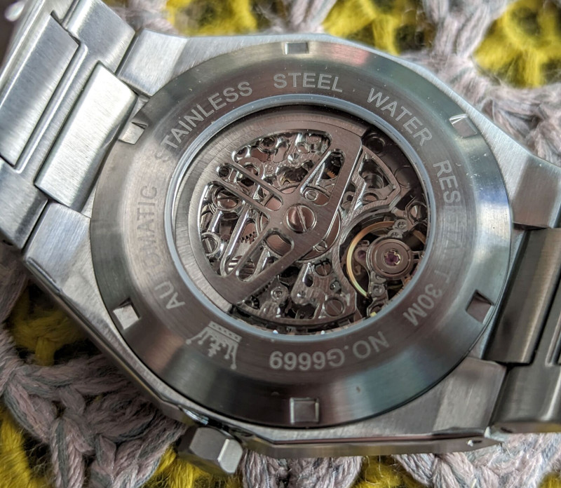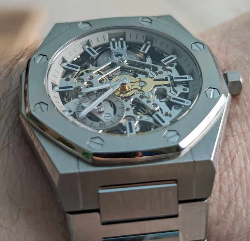 Utánna már a rendereken is látszott a skeleton óráin hogy nem Miyota. Viszont elvileg a számlap lábkiosztása, a mutatók és a szerkezet mérete megegyezik a Miyota 8N24-el és ha eljönne a szervíz ideje akkor lehet cserélni benne a szerkezetet Miyotára