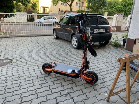 Késő délután kicsit nyúztam, sokkal stabilabb, erősebb. A rugózása van olyan jó (sőt..), mint a Kugoo-m felfújható hátsó kerékkel, de azért csodát nem lehet tőle várni. Szerintem 28-30 km-t elmegy az én súlyomat cipelve (80pár kg).
