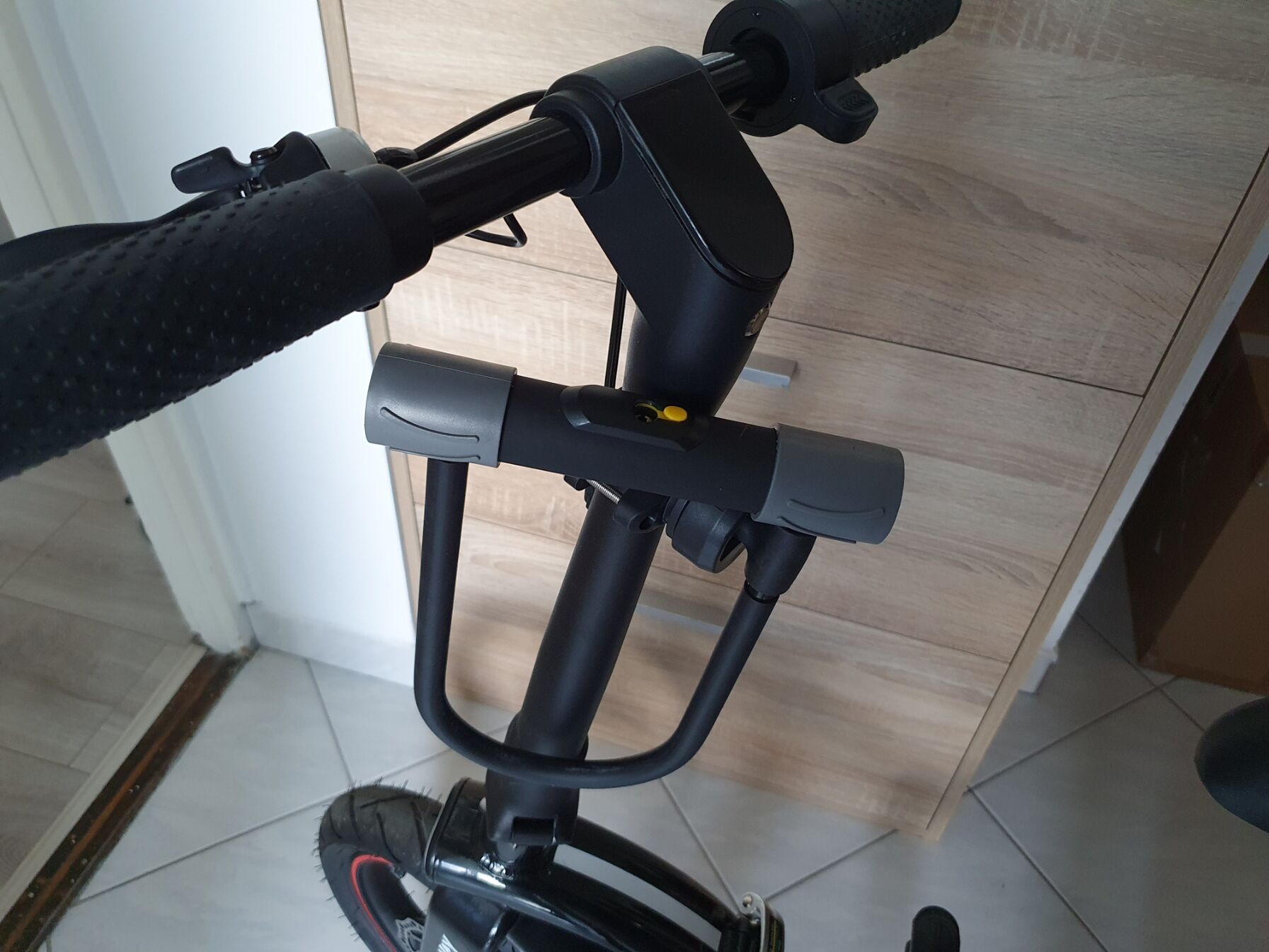 Villanyoszlophoz is oda tudtam vele zárni és van egy klassz tarója amit én a kormányoszlopra rögzítettem. Egy mozdulattal rákattintható, leszedhető.