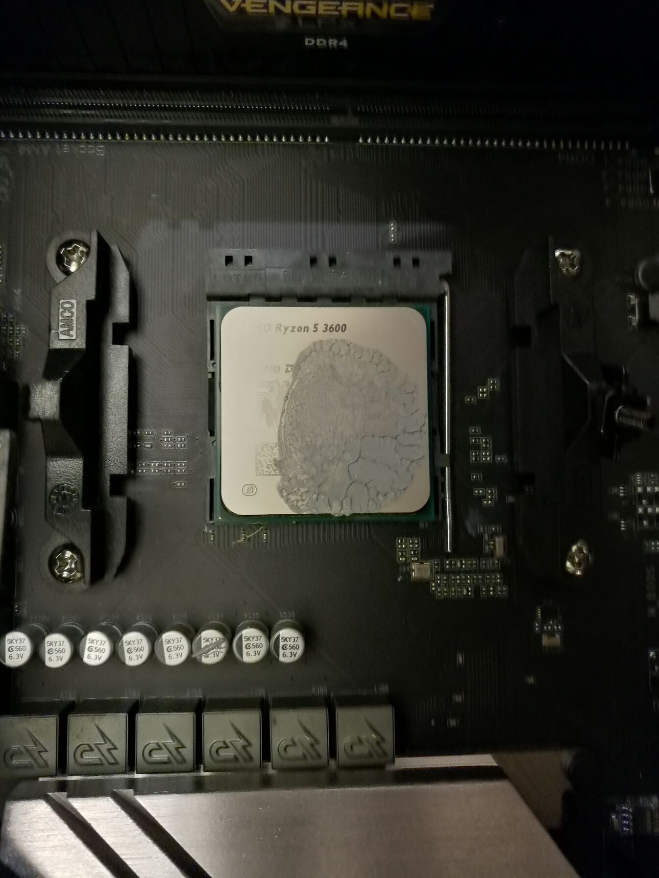 Paszta: a proci pumpa levétele után ez fogadott és múltkor is így volt, hiába tettem középre egy pöttyöt, le is mértem, így elcsúszott. Sőt legutóbb szerintem a pumpa közepére tettem. Akkor így a magon és a SOC-on nem sok paszta volt. Most a delidelt 3600 alapján a magra, a SOC-ra tettem pöttyöt, meg a másik üres sarokba egy kicsit.