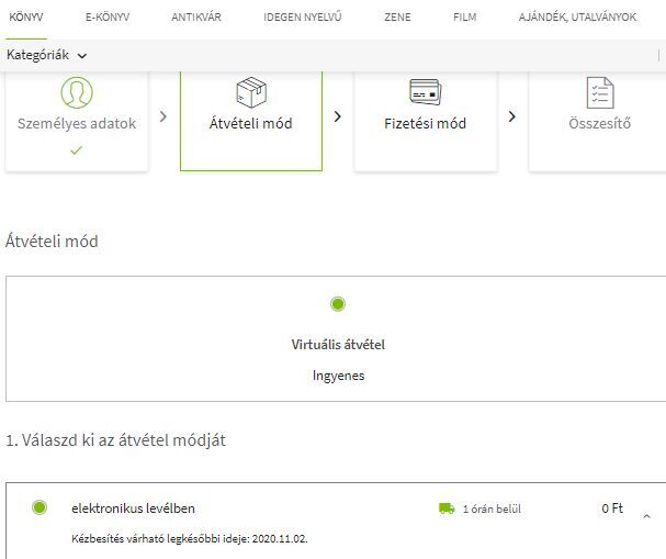 engem kíváncsivá tettél, elolvasom én is. köszi a tippetez vicces, amikor ebookot vesz az ember és ott hagyták? az átvételi mód menü pontot [kép]