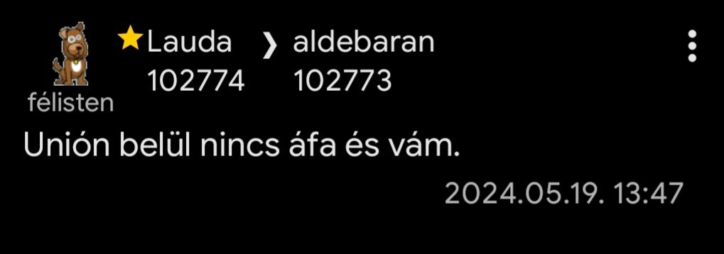 ha neki iram volna, az ő hozzászólására válaszoltam volnate meg leírtad a befizetett 27% áfára, hogy nincs áfa fizetési kötelezettség unión belül.