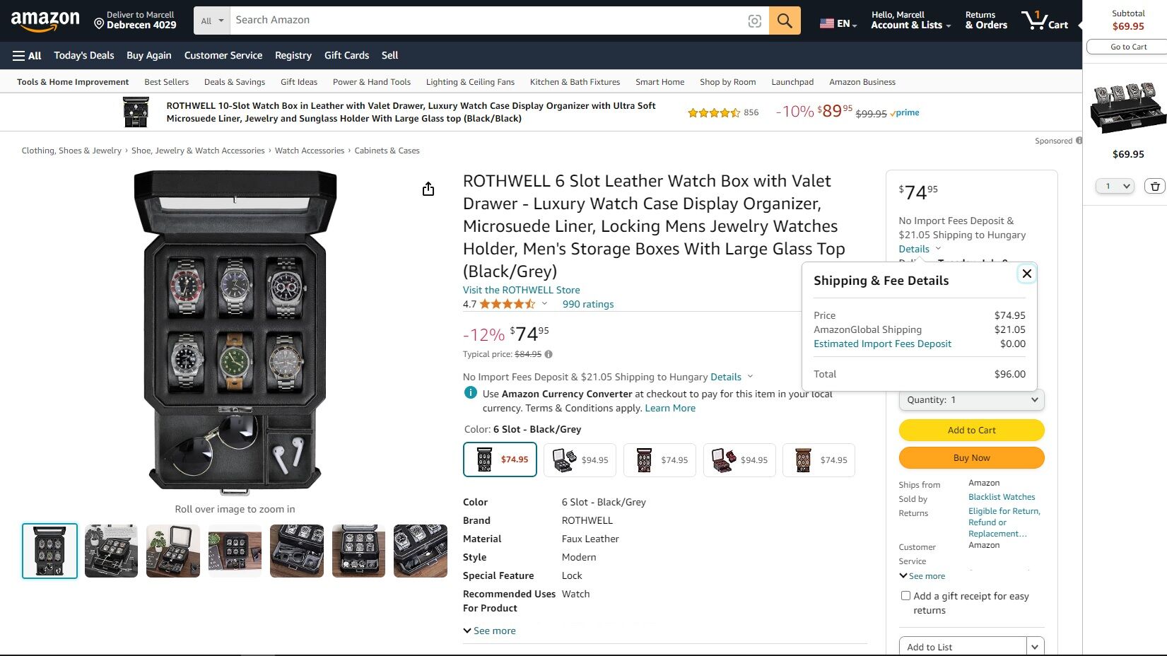 Ez még a jobbik eset, mert idehaza kezelve a szállítási költség is benne lenne, valamint szállítótól függően fizethetsz ügyintézési díjat is, ami DHLnél 6ezer pénz: [link]