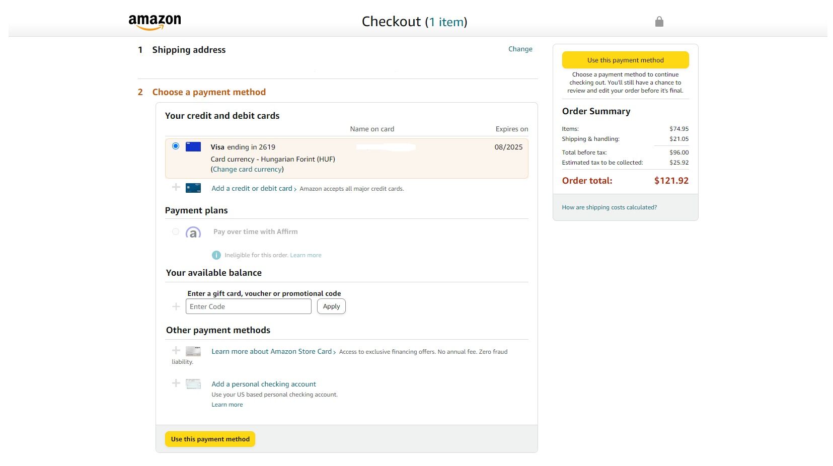 Kellene nekem egy kis segítség amazonos rendeléssel kapcsolatban. Adott egy termék, aminél azt írja, hogy vásárlásnál, csak a terméket és a szállítási ktg.-et kell kifizetni: [kép] , és írja, hogy: "No Import Fees Deposit". Viszont a kosárnál már mégis levon erre egy 26 dollárt: [kép]