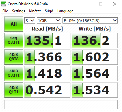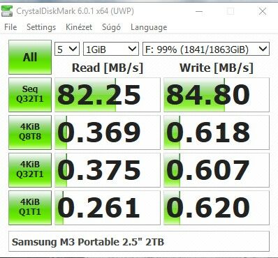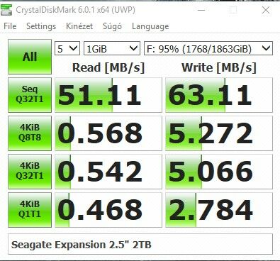 Sziasztok, egy kis érdekesség, mind2 külső 2.5" 2TB-os HDD-m szinte tele vannak, lefutott a CrystalDiscMark, hogy ilyen állapotban milyen sebességre képesek: