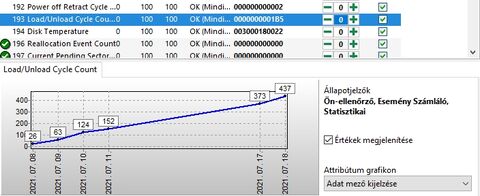 Ha megnézed a külső házban lévő HDD adatlapját, akkor láthatod, hogy a fejparkolásnál (Load/Unload Cycle Count) 600 000 a gyárilag megadott névleges (ami nem feltétlen a tényleges) limit. Továbbá ha megnézed mások példáit, akkor láthatod, hogy másnál egy ugyancsak 2,5"-os Toshiba merevlemeznél 18 ezer az összes indulás / leállás száma és mégis gond nélkül üzemel, sőt volt akinél egy WD több mint 62 ezer indulás / leállás esetén is.
