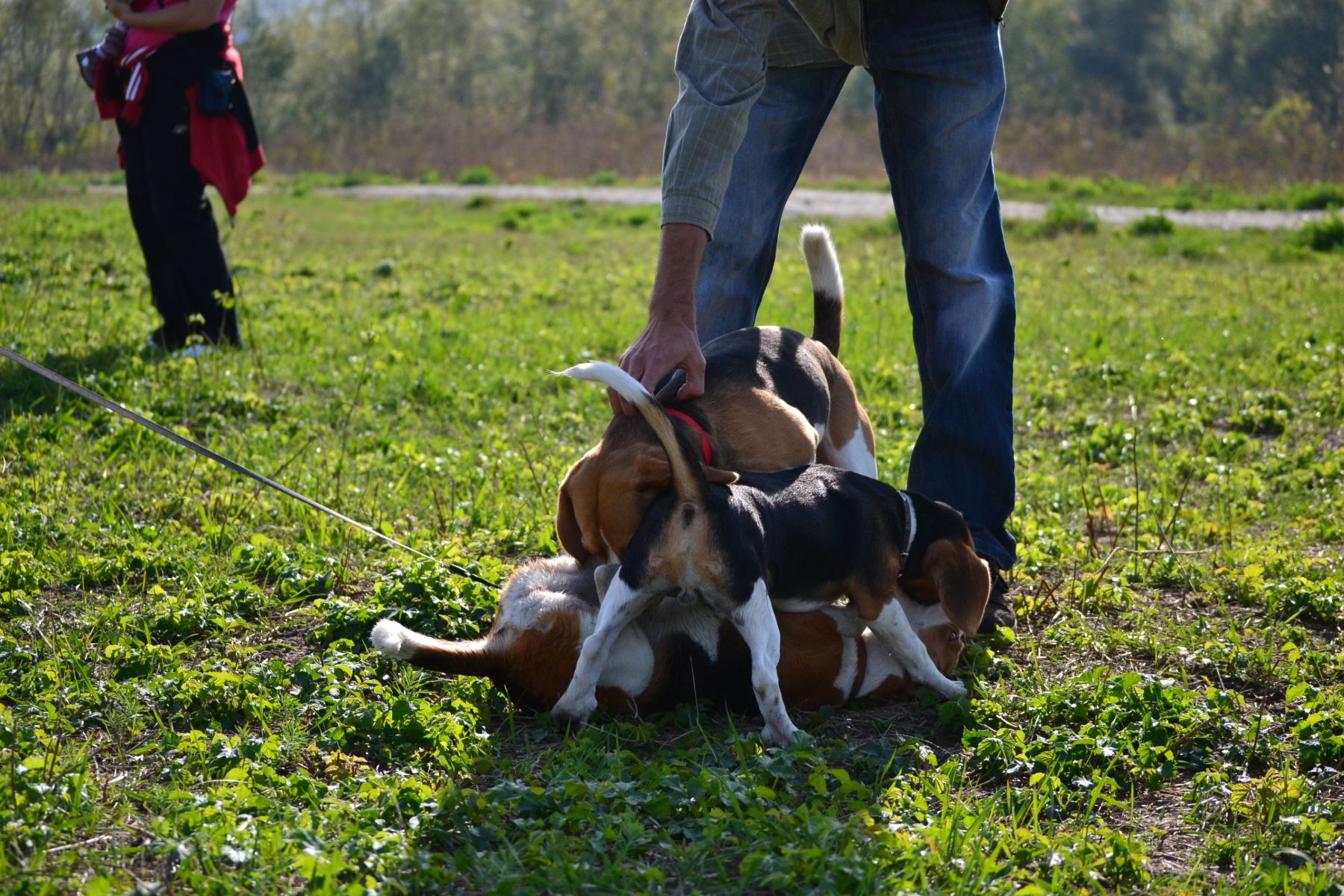 Kérdeztem Tőle, hogy nem bánt-e nem lesz-e gond?! Mondta, hogy dehogy nagyon rendes játékos kutya, következő pillanatban már a nyakát elkapta az enyémnek.(Ő szabadon vitte a kutyát-enyém megkötve volt)