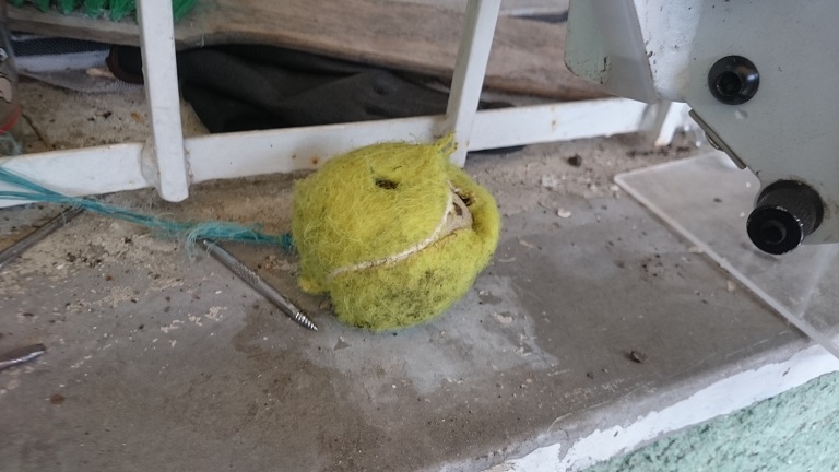Csak hogy illusztráljam a helyzetet. Ez a teniszlabda vadonat új volt 3 játékkal ezelőtt. Alkalmanként 15-20p tartalmas szórakozást "élvezhetett" végig. Ilyenkor nagy részt loholt utána a kutya és kb 5 perceket töltött a szájába minden egyes játék alkalmával. Tehát a 15 perc összesített eredménye látható lentebb