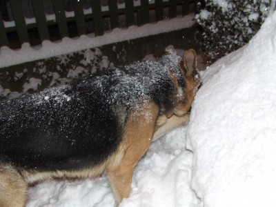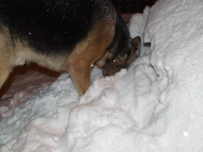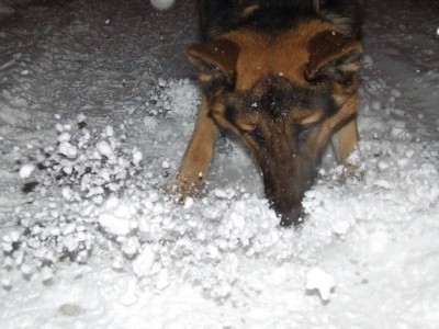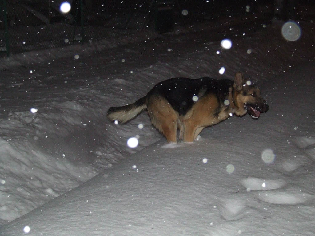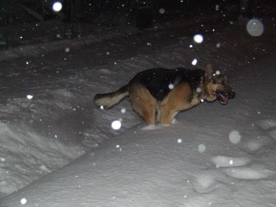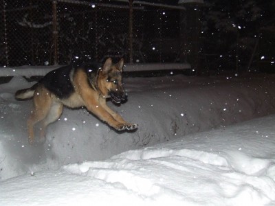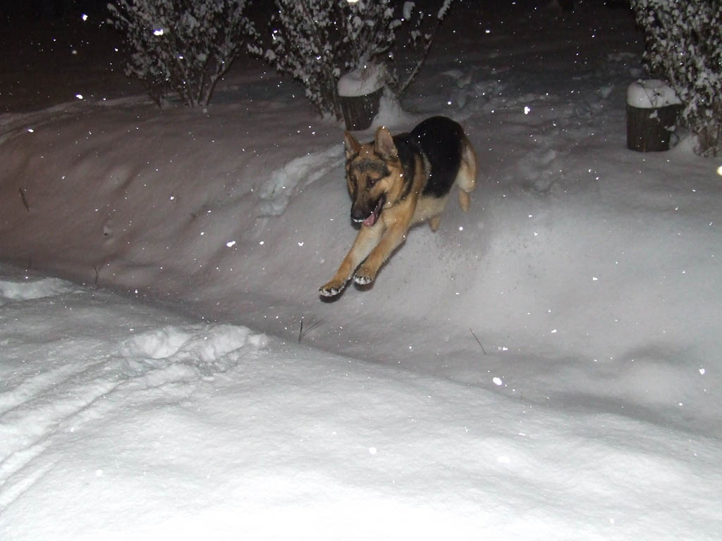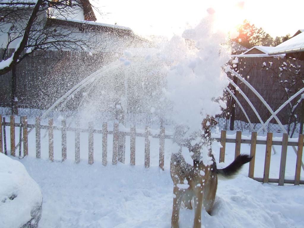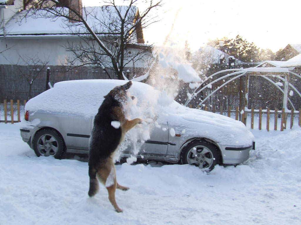 Az én németjuhászom is megbolondul a hóért, nem zavarja, hogy hogy vastagon mínuszok vannak kint, és esik a hó. Képes a legnagyobb kupacokba beleugrani, a hógolyókat elkapni, stb.