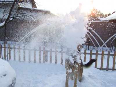 A kutty az ünnepekre való tekintettel szétkapott egy hungarocell táblát, ismét fehér a kert.