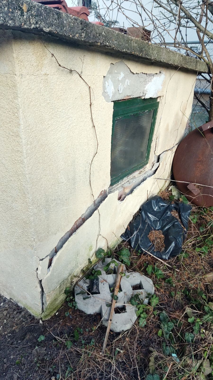 Raadasul a felujitott haz kb 1.5-2 meterre van tole (sufni bejarattal szemben), szoval a fotozott oldalara kene doljon,mert a masik oldalon ertekes dolgok vannak a foldon, es lusta voltam elpakolni