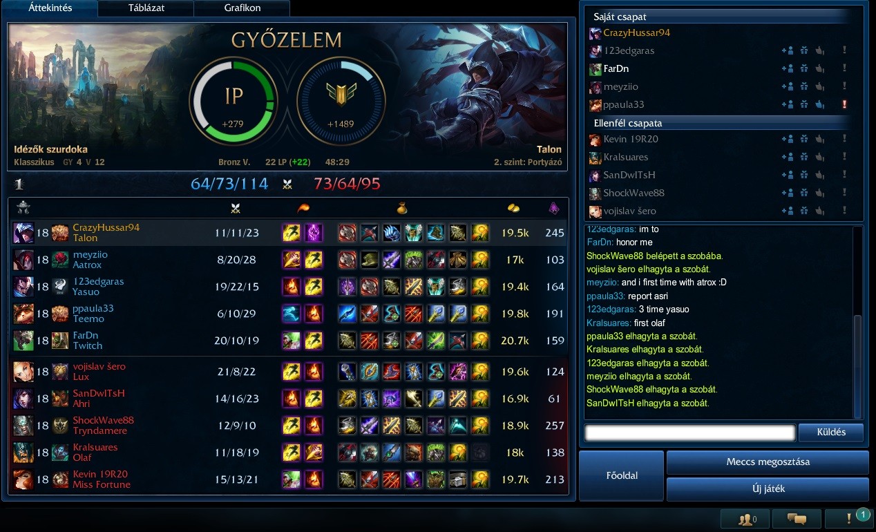)MMR-em op.gg szerint Gold 4-be való, remélem tudom tartani a szintet és nem dob vissza silverbe