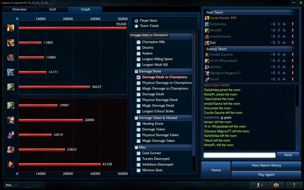 Te is eune-es vagy? Amúgy most mentem én is egy "olyan" meccset, hogy overall stat 32/32, my stat 18/5/10. Persze hogy defeat lett. Mid és a support ezer+ ping-el küzdött. Top teemo úgy játszott mint aki először lát lol-t. Jóformán 2v5 volt a game. Ugye az igazi ilyenkor az lett volna ha legalább van TS. Akkor lehet kommunikálni. Gyere ide, ne menj oda, menjünk egyszerre, elvagyok feed-elve + 4 szint előnyöm van, most menjünk amíg ez az előny meg van, wardolj, ne bóklássz el, hagyd a miniont, stb....Szóval van az a szituáció hogy csinálhatsz amit akarsz, akkor se fogtok nyerni.