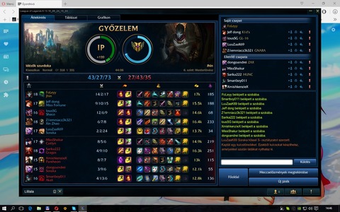 Drag-on (aki nem ismerné magyar és oktató jellegű lol videókat tesz fel dzsátubéra) mondta egyik videójában, hogy ő már teljesen kihúzta a chat ablakot a képernyőből, hogy soha ne is lássa mit irogál a sok toxic. Szerintem én is ezt fogom csinálni, nagyon jó tippet adott. Ha akarnak jelezni, pingekkel úgyis tudnak, a sok noobozás, reporttal fenyegetés meg csak feltolja az ember vérnyomását, semmi értelme. Tudom ajánlani nektek is