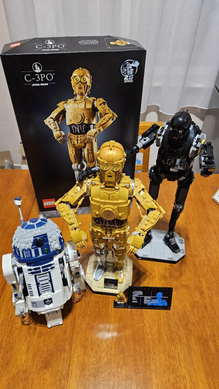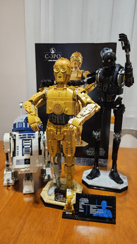 Közben befejeztem C-3PO-t, kész a trió. magassúguk miatt csak a polc tetejére tudtam őket felrakni, 170cm magasan, nem annyira néz ki jól, mint itt lent az asztalon, de ott nem maradhattak.