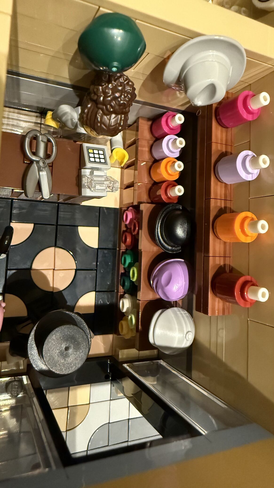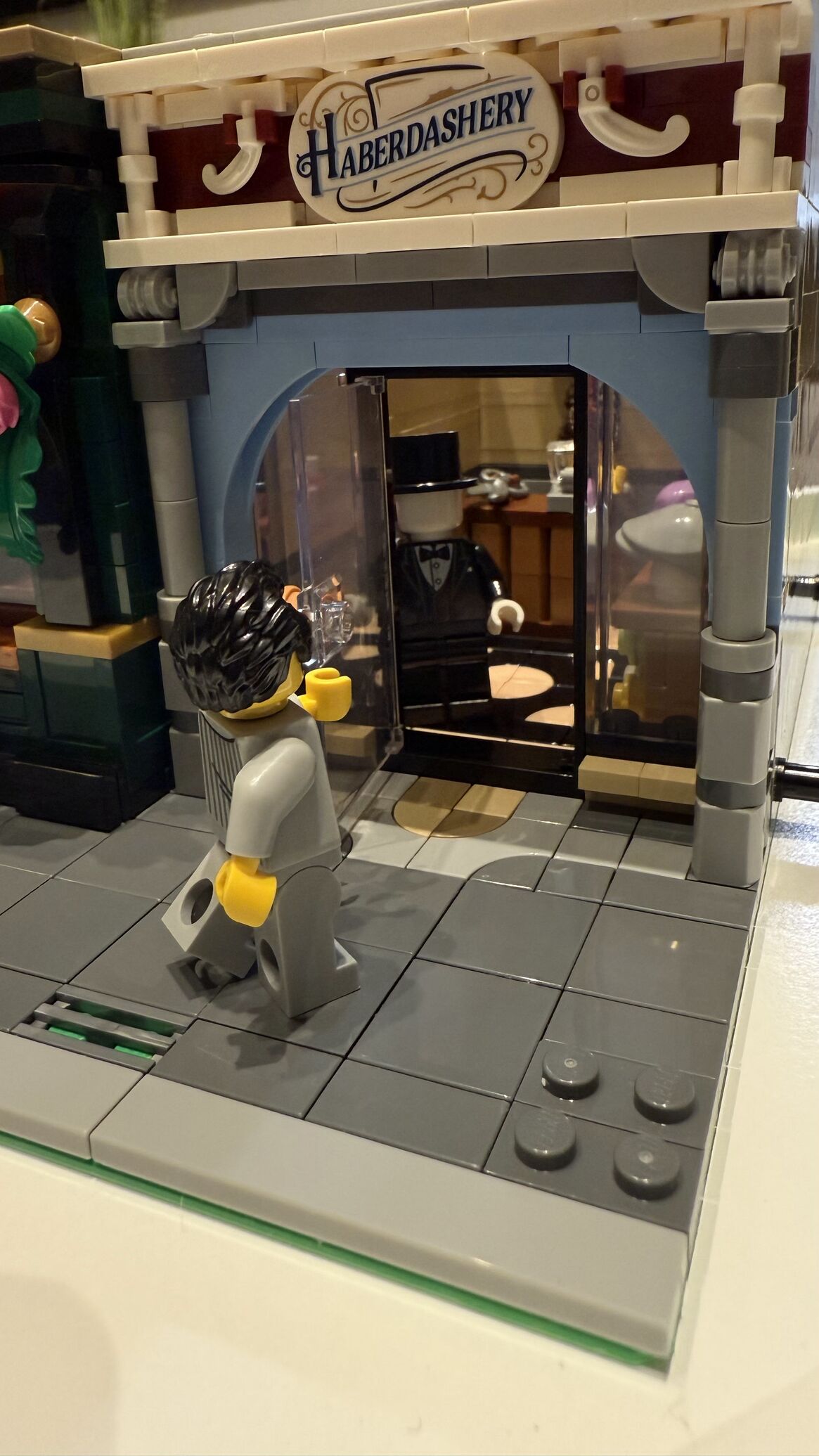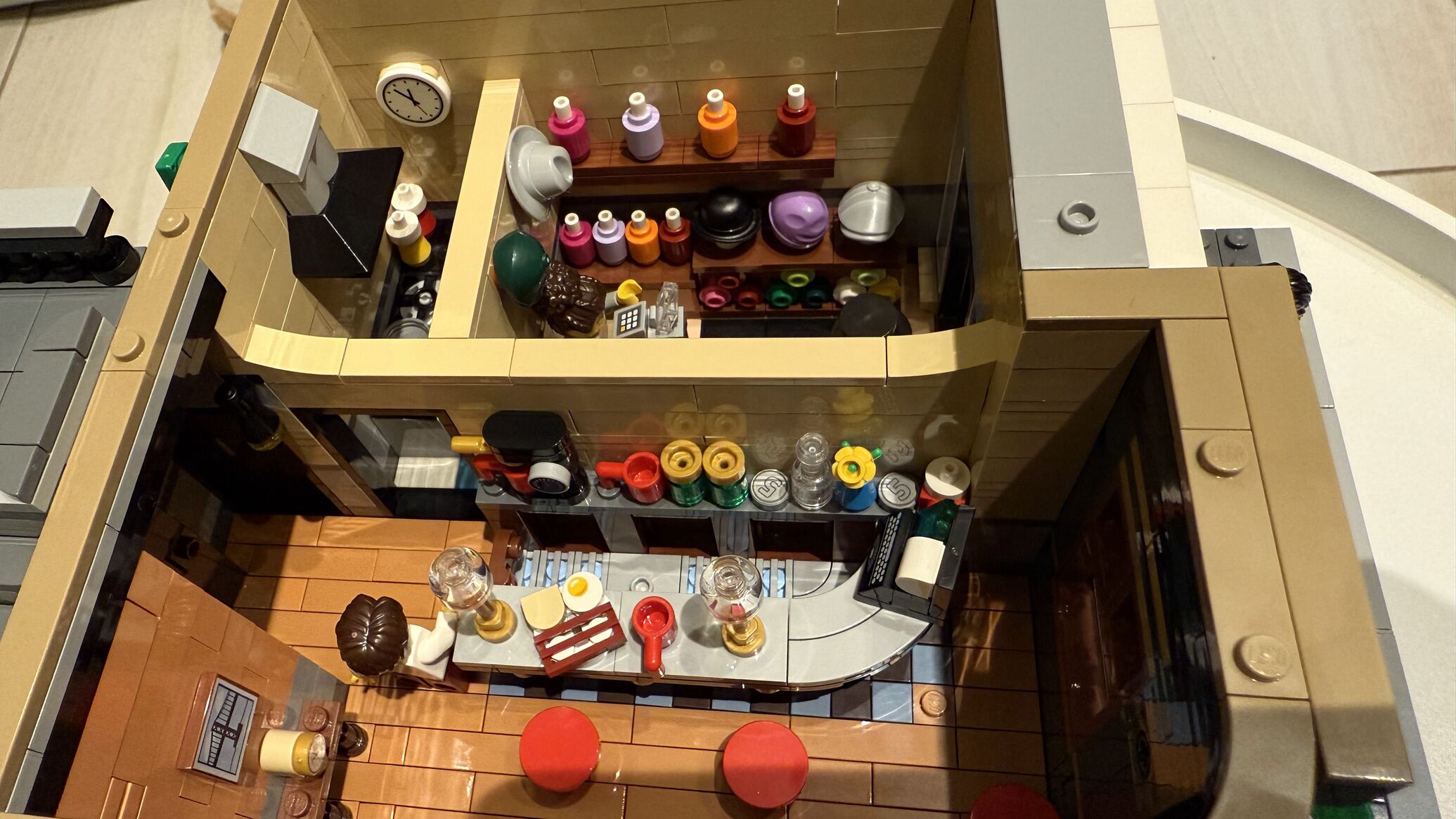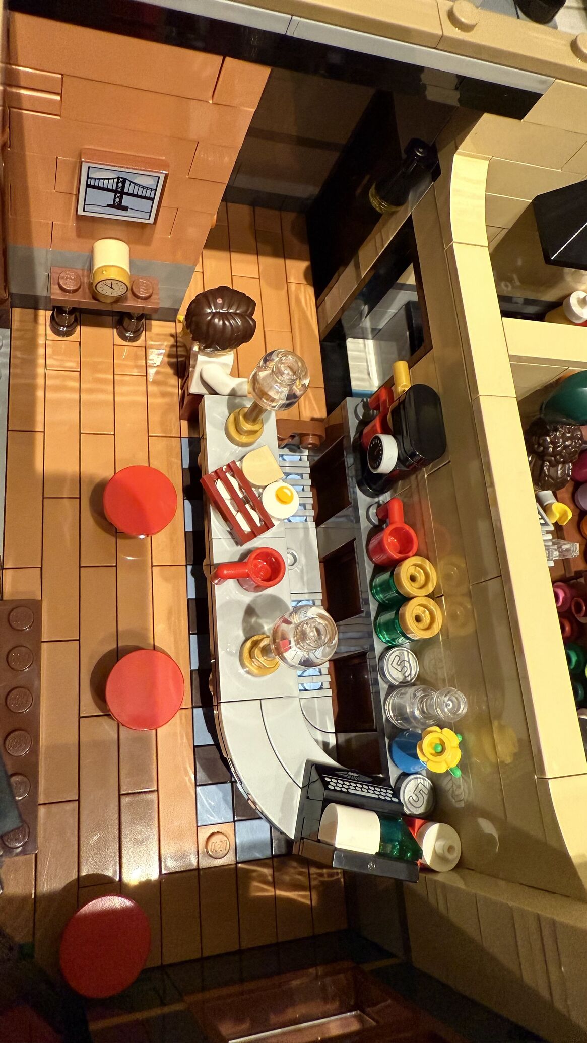 Mai nappal megbontódott az új moduláris szett.10 papír tasak után kész az alsó szint. Egyik részében egy amcsi stílusú étterem kapott helyet, a másik kisebb részben egy textil-kalap bolt. Mindkettő alaposan kidolgozott.Termêszetesen nem hiányozhat a mellékhelyiség sem