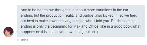 Nekem az járt a fejemben mióta elkezdtem a játékot, hogy lehet a harmadik opció Max halála lett volna, valahogy érezhető volt számomra ez is a játék alatt, akárcsak Chloe halála. Arra számítottam, hogy egyikőjük mindenképpen meghal a sztori végén. Persze lehet én képzeltem már bele ilyesmiket, de elég jól megírt története van ennek a játéknak, és szinte semmit sem lehetett tudni biztosra. Folytatás - azaz következő évad - teljesen új sztori, új szereplőkkel lesz, ha lesz. Csak arra lennék kíváncsi, hogy maga a téma, azaz az időtekergetés megmarad, vagy totál más témát hoznának össze ?
