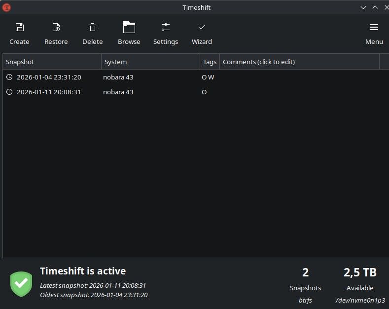 abszolút noob kérdés, de nem találtam google keresővel sem: a Timeshift miért nem mutatja a snap méretet? a GUI-t ami nekem is van hozzá, láttam máshol is, ugyanígy, ráadásul rsync+ext4 kombinációval. nekem btrfs a rendszer és inkrementális a mentés. ez normális, csak én nem értem? Arch videókban viszont méreteket is meg egyéb paramétereket is kilistázott, ugyanúgy btrfs. ez tuti falami user-error, mert github-on is ott van, de nem találok ilyen beállítást sehol.